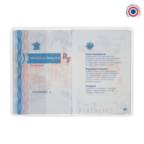 Pochette passeport. Pour tous les produits de fabrication PVC, un frais technique de 54 euros ht est appliqué à chaque changement de coloris.