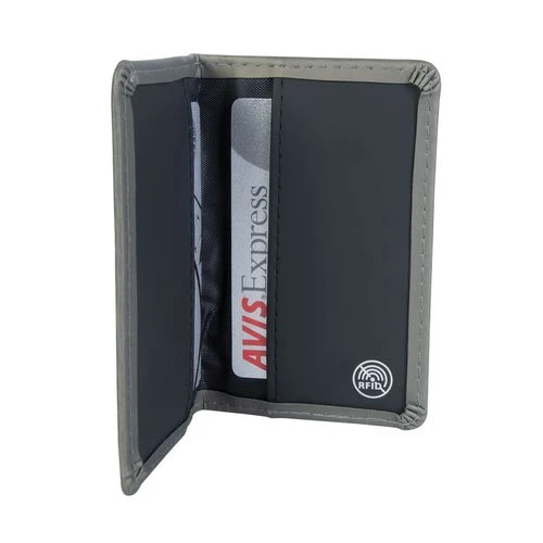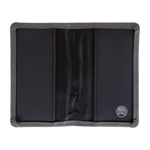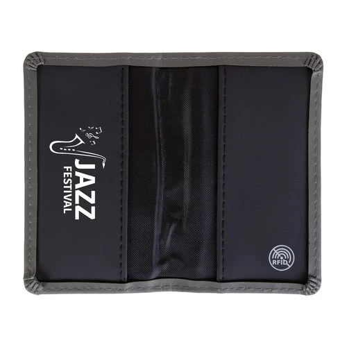 Etui cartes de crédit ANTI-RFID. Logo anti-rfid imprimé à l’intérieur. 2 poches pour cartes.