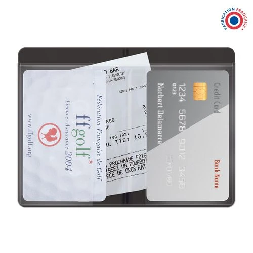 Etui 2 cartes de crédit. 1 poche horizontale. 2 poches verticales. Pour tous les produits de fabrication PVC, un frais technique de 54 euros ht est appliqué à chaque changement de coloris.