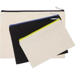 Pochette en coton canvas, fermeture zippée de couleur contrastée. Grand modèle. Certifié STANDARD 100 by OEKO-TEX® N° CQ 1164/1 IFTH.