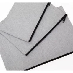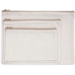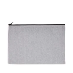 Coloris Ecume et Pebble Grey 75% coton recyclé / 22% polyester recyclé / 3% autres fibres. Pochette plate avec fermeture zippée.