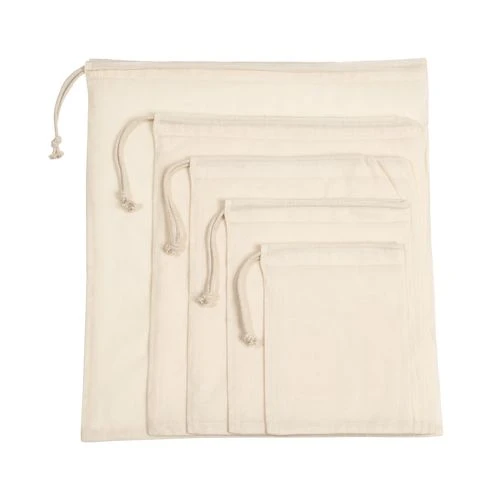 100% coton biologique. Fermé avec un cordon coulissant. Existe en différents formats. XS : 20 x 15 cm ; S : 25 x 20 cm ; M : 30 x 25 ; L : 35 x 30 cm ; XL : 42 x 38 cm. Certifié STANDARD 100 by OEKO-TEX® N° CQ 1164/1 IFTH.