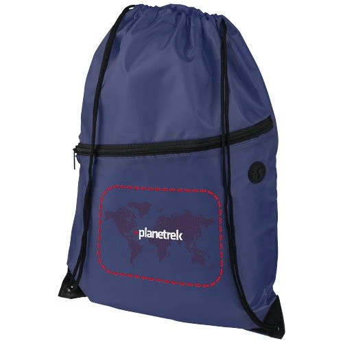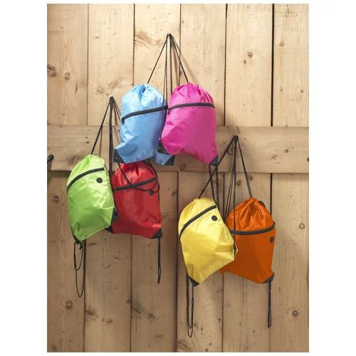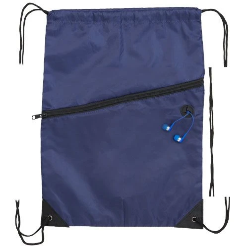Grand compartiment principal avec fermeture à cordon de couleur noire. Comprend une poche frontale zippée, un port pour écouteurs et des pattes de coin renforcées. Résistance aux charges de 5kg.