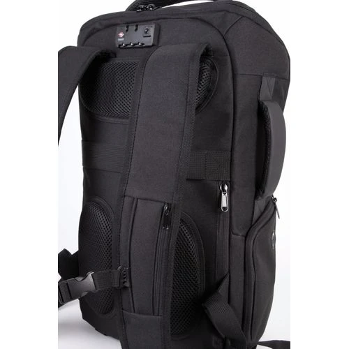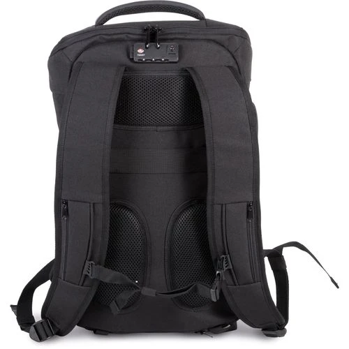 100% Polyester. Dont 50 % en polyester recyclé. Sac à dos antivol en polyester 600D. Panneau avant avec protection anti-coupure. Fermeture zippée au dos avec système de verrouillage TSA. Poche zippée à accès rapide au dos. Bretelles et sangle de poitrine ajustables. 2 poches zippées sur les bretelles. 2 sangles d’attache sous le sac pour transporter vestes, etc. 2 poches côté. 1 poche de chargement sur le côté, avec 1 port USB côté poche pour connexion de l’appareil à charger, et 1 port micro USB (câble inclu) côté sac pour branchement du Powerbank. 1 poche côté avec câble anti-vol spiralé pour attacher le sac à un pied de table ou de chaise. Compartiment intérieur avec rangement pour ordinateurs jusqu’à 15”. Rangement matelassé pour des tablettes jusqu’à 11”. 2 poches en maille filet. 2 pochettes zippées amovibles pour câbles et accessoires. 2 poches intérieures, dont 1 pour bouteilles/gourdes et 1 pour powerbanks. Housse anti-pluie avec réflecteurs de sécurité intégrée.
