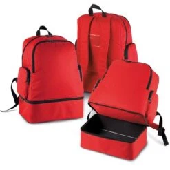 Sac à dos de sport en polyester 600D. Base rigide détachable en polypropylène avec pieds en plastique. Poche devant zippée pour faciliter la personnalisation, 2 poches coté, porte-carte. Base rigide livrée avec sac à dos.