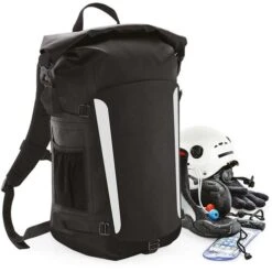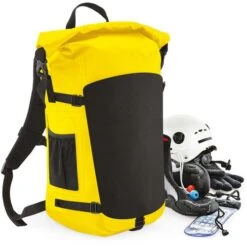 100% toile de bâche PVC rigide étanche. Système sécurisé de fermeture à enroulement et à clip. Fermeture éclair étanche. Résistant à l’usure. Sangles de maintien. Parties réfléchissantes à visibilité renforcée. Poche extérieure en maille filet. Dos matelassé et ergonomique en maille filet. Bandoulières matelassées ajustables en maille filet. Poignée de transport. EasyPanel TM détachable et réversible pour faciliter la personnalisation. Étiquette détachable.