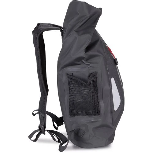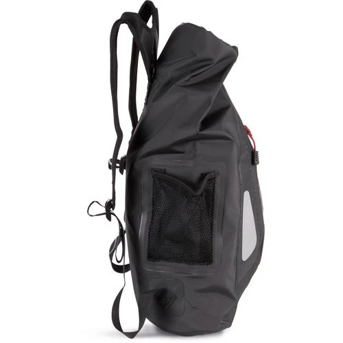 Sac fourre-tout étanche en toile tarpaulin PVC (polychlorure de vinyle). Système de fermeture à enroulement roll-top. Poche avant avec fermeture zippée 100% étanche. Bretelles confortables et respirantes. Poche côté en maille filet. Parfait pour les sports aquatiques, en mer ou pour des virées en moto.