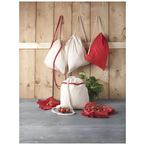 Grand compartiment principal avec fermeture à cordon en coton. Capacité de charge maximale de 5 kg.