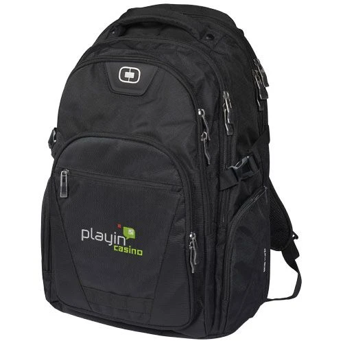 Sac à dos au design exclusif avec compartiment matelassé convenant à la plupart des ordinateurs 17″, poche pour tablette, poche frontale avec deux compartiments pour accessoires, panneau d’organisation et deux poches latérales.
