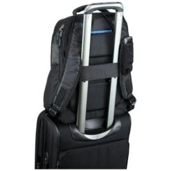 Comprend une section désignée d’entrée latérale qui se déplie complètement à plat sur un tapis à rayons X et peut contenir un ordinateur portable de 15,4 ”. Le compartiment principal comprend une pochette zippée doublée en nylex et rembourrée pour iPad®/tablette. Livré avec deux poches zippées à l’avant avec un panneau d’organisation à l’intérieur. Comprend un port pour écouteurs, deux poches latérales zippées et une poche en maille. Dos rembourré avec poignée en néoprène et bretelles réglables avec poche média, poignée de transport et bretelle à bagage. Capacité : 27 litres.