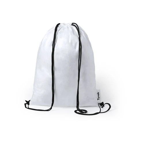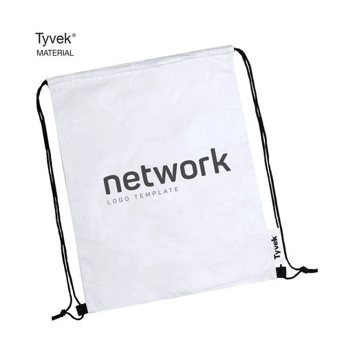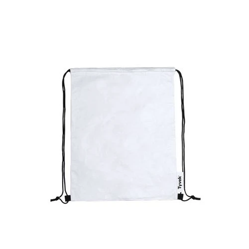 Sac à dos cordelette en Tyvek®, matière agréable au toucher et legère, 100% recyclable et fabriqué à partir de fibres de polyéthylène, très résitant, sa flexibilité, durable et d´impression facile. Fermeture cordelette noire et les coins renforcés. Etiquette sur le coté à l´extérieur avec le logo Tyvek®.