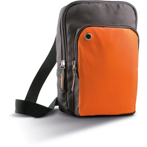 Sac bandoulière en polyester 600D. Bandoulière ajustable, compartiment central avec porte-clefs et poche frontale zippée + poche au dos.