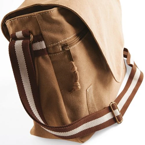 Toile lavée. Compartiment principal avec fermeture zippée. Poches étuis jumelles à l’arrière. Multiples poches zippées. Fond matelassé. Fermeture Rip-Strip™. Bandoulière ajustable.