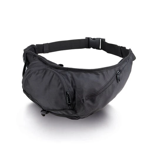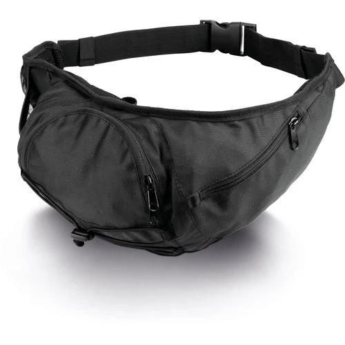 Sac de ceinture / banane pour le sport ou toute activité plein air, grand compartiment intérieur zippé, deux grandes poches côté dont une zippée, dos matelassé avec filet et poche secrète zippée.