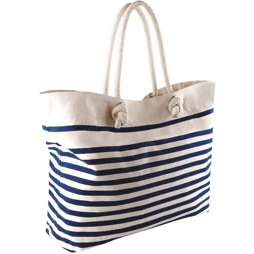 Grand sac de plage style marin en coton canvas. Anses en cordelettes de coton, poche intérieure zippée, fermeture avec bouton pression.