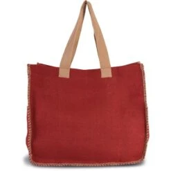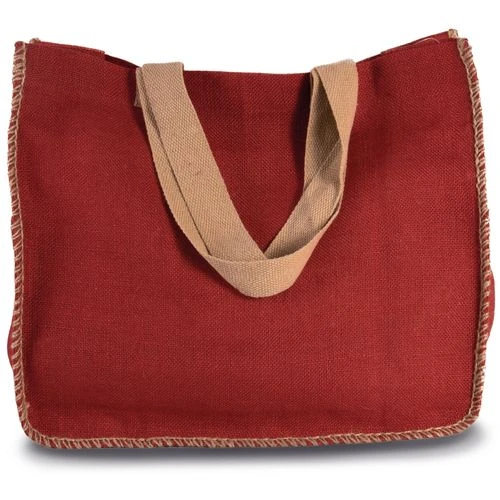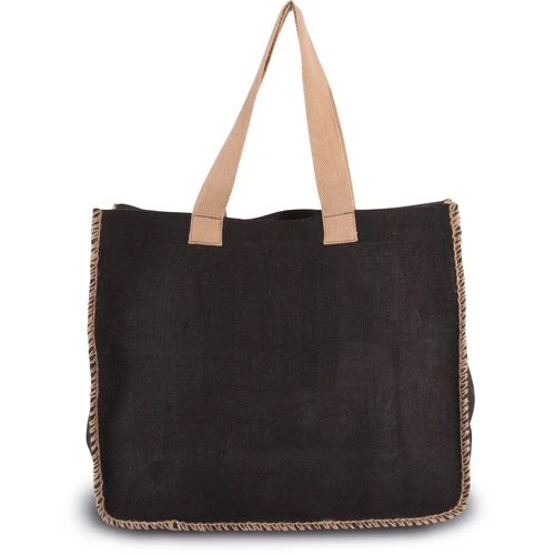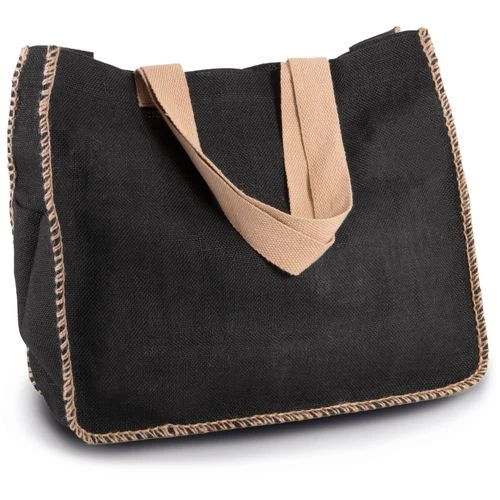 Sac shopping non-laminé avec coutures contrastées en fil de jute sur les côtés. Poche intérieure en jute. Poignées en coton.