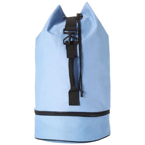 Sac marin tendance avec fermeture à cordon, poignée latérale et bandoulière réglable. Avec compartiment à chaussures zippé séparé dans le fond.
