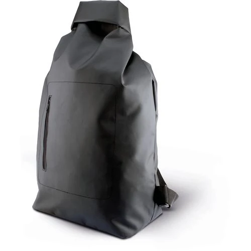 Sac marin en toile imperméable tarpaulin polyvinil (PVC), fermeture haut du sac avec boucle, bretelles / sangles ajustables, poche devant avec zip imperméable.