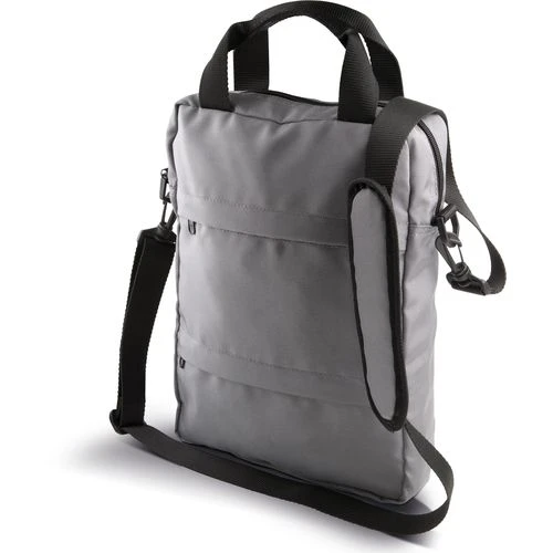 Sac messenger / porte-tablette vertical en polyester 900D, 3 poches devant, bandoulière amovible et ajustable.