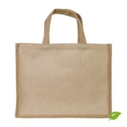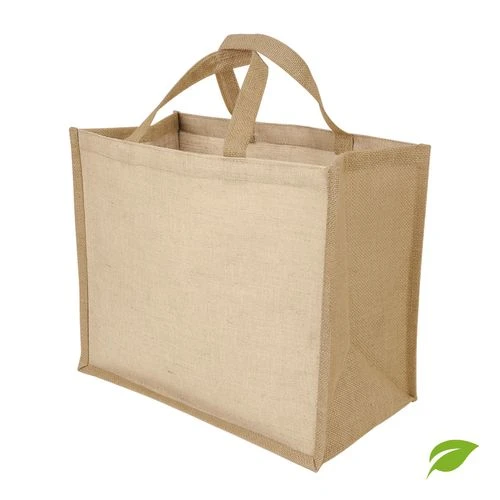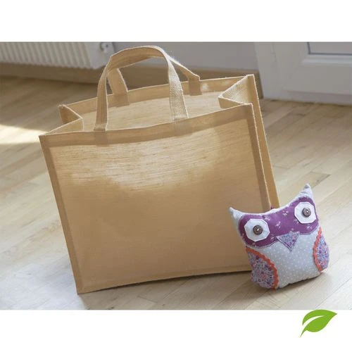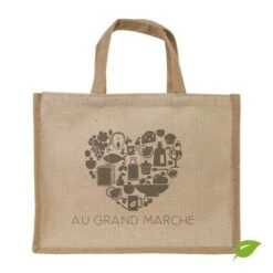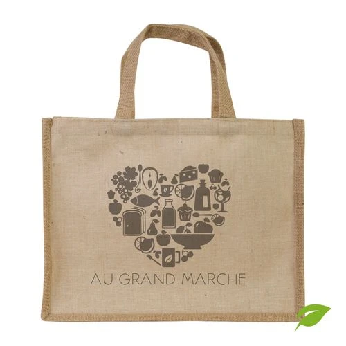 Matieres : Toile enduite mélange de jute et coton (Jute pour les côtés et les anses)