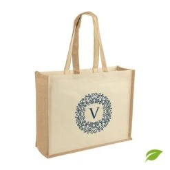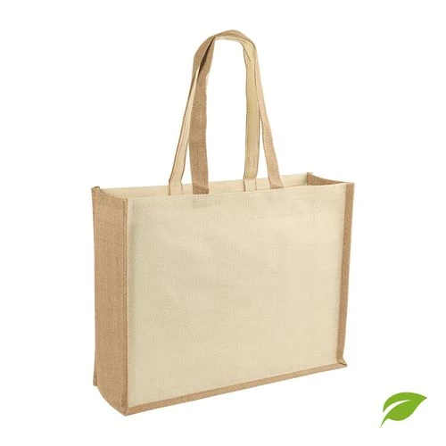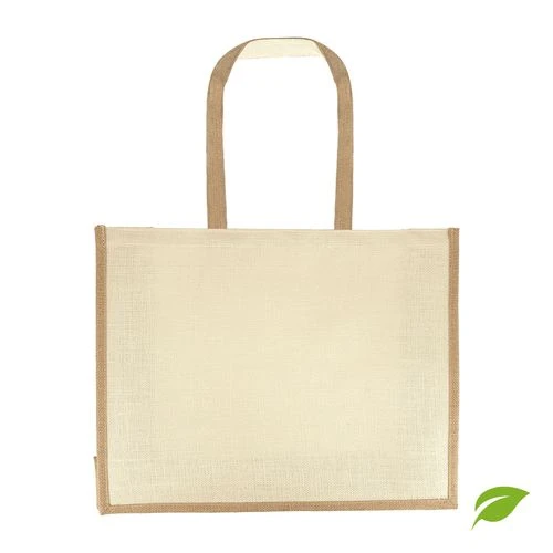 Matieres : Toile de jute enduite. Anses doublées coton.