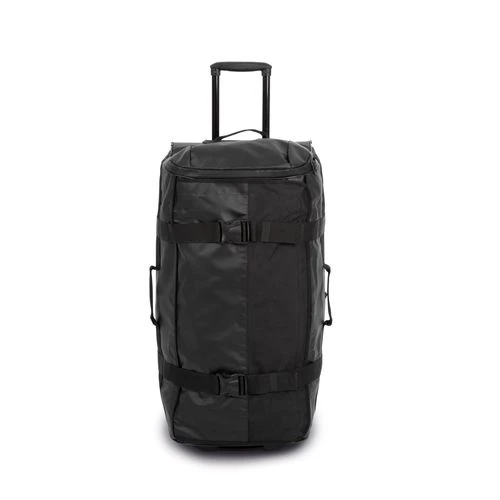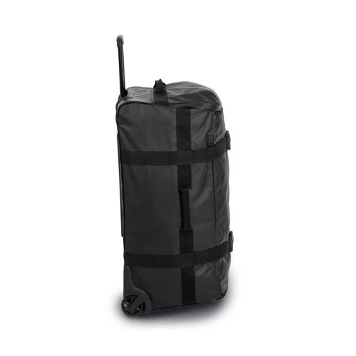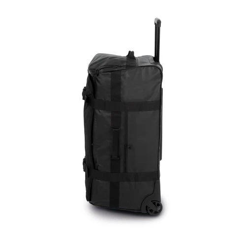 100 % polyester / 100% PVC. Sac trolley grand format en chlorure de polyvinyle et polyester. Il est entièrement conçu en matériaux imperméables avec une fermeture glissière étanche. Pratique, il est composé d’1 poche range-chaussures sur le côté, d’1 poche frontale zippée, d’1 grande poche interne en filet pour accessoires avec fermeture zippée. Pour faciliter le transport, il est équipé de 2 sangles de compression, de poignées sur les 2 côtés. Robuste, ce sac a été pensé avec des renforts de protection sur les angles, 1 barre de protection sur le dos du trolley, 1 fond semi-rigide avec 1 poignée en plastique qui fait office de pied.