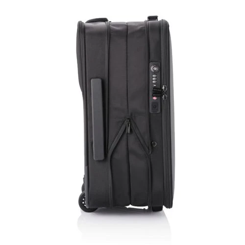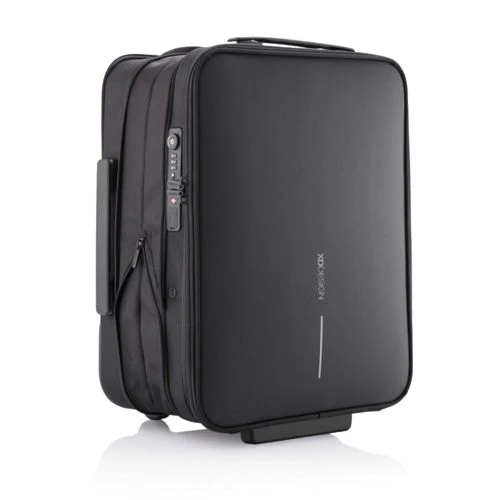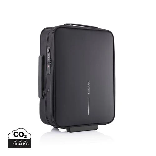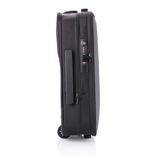 La valise pliable Flex fait à la fois office de mallette et de bagage cabine ! Son design unique vous permet d’augmenter sa capacité de 50 %. Cette valise est très utile lors des contrôles aux aéroports, car vous avez accès, depuis la poche de devant, à votre ordinateur portable ainsi qu’à vos produits de toilette. Vous pouvez mettre ces derniers dans la pochette transparente fournie à cet effet et fixée au sac magnétiquement. Rangez de façon ingénieuse vos affaires grâce aux différents compartiments et économisez de la place en utilisant les bandes de serrages et autres clips magnétiques. La valise pliable Flex est aussi équipée de la fameuse technologie Anti-Vol, reconnaissable par l’absence d’ouverture à l’avant, mais aussi par la présence de pochettes dissimulées, d’une serrure TSA et d’un port USB. Fabriqué à partir de matériaux rPET (utilisant 52 bouteilles recyclées, économisant 31 litres d’eau denadnt le processus de production), et avec la technologie Aware®. Modèle déposé®