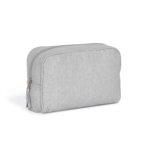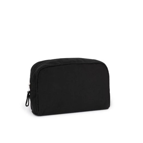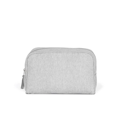 Coloris Black Night 67% coton recyclé / 30 % polyester recyclé / 3% autres fibres. Coloris Ecume et Pebble Grey 75% coton recyclé / 22% polyester recyclé / 3% autres fibres. Cet article peut servir de trousse de toilette ou de sac de rangement. L’intérieur du sac est renforcé par un thermocollant.