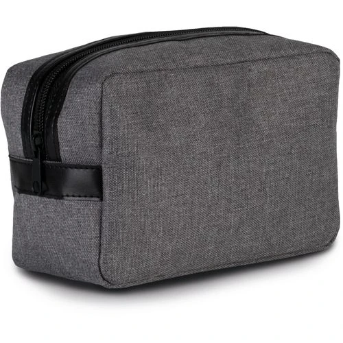 Trousse de toilette en polyester 600D ton sur ton et finitions contrastées en PU simili cuir. Doublure intérieure en polyester 210D.