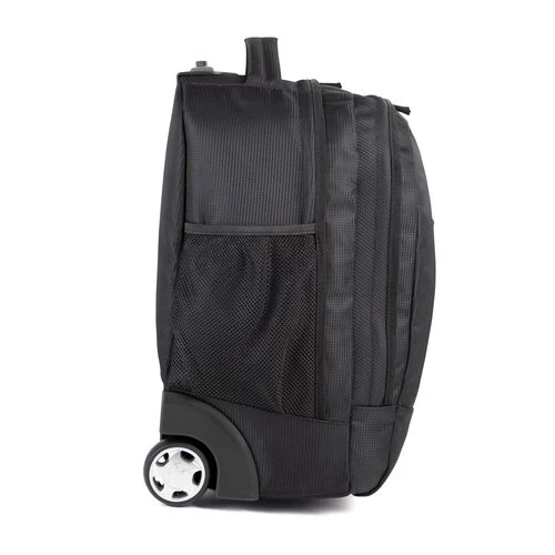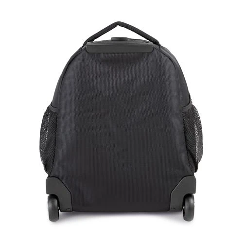 Valise Trolley spéciale business avec dimensions adaptées aux cabines des avions. Système trolley dans un élégant aluminium incurvé. Compartiment avant faisant office de porte-documents. Compartiment pour ordinateur portable doublé. Grand compartiment à vêtements. Poche avant 100% personnalisable.
