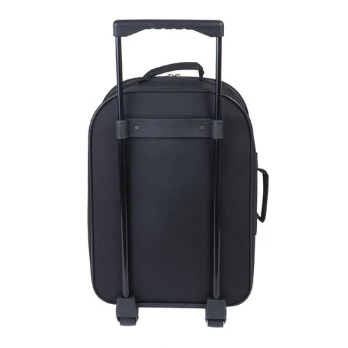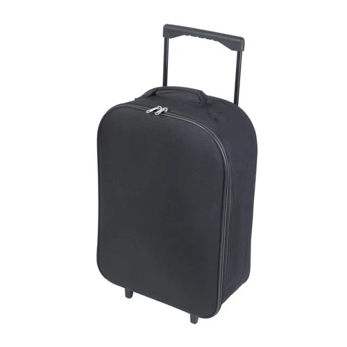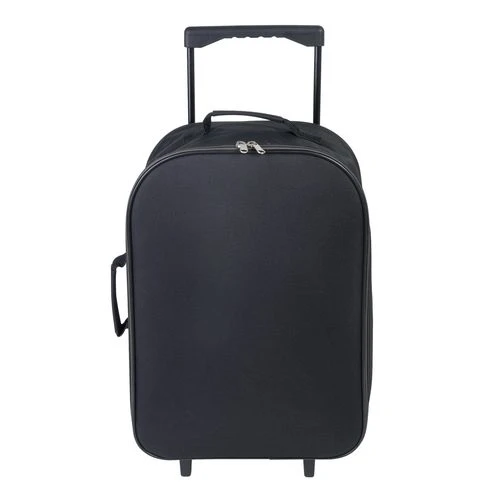 Valise trolley pliable. Capacité 27 L. Sangles de maintien à l’intérieur. Poignée rétractable. 2 roulettes. 2 poignées de portage.